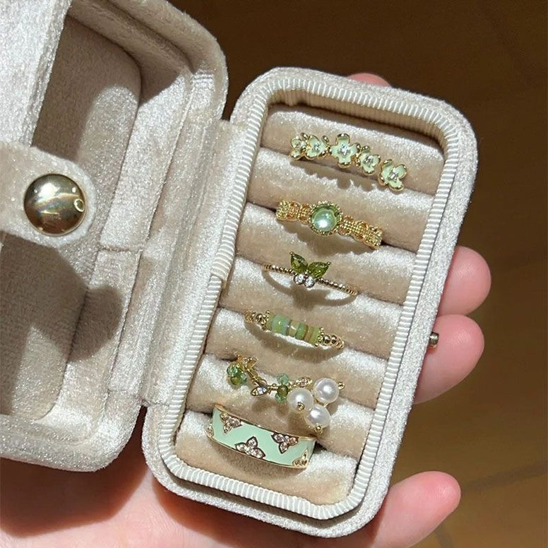 Green Enamel & Crystal Ring Set, Dainty, Simple, Trendy, Cute Stackable Finger Rings for Women Teen Girls, Waterproof Rings, Finger Chic Rings Accessories Jewellery Gifts-Free Size